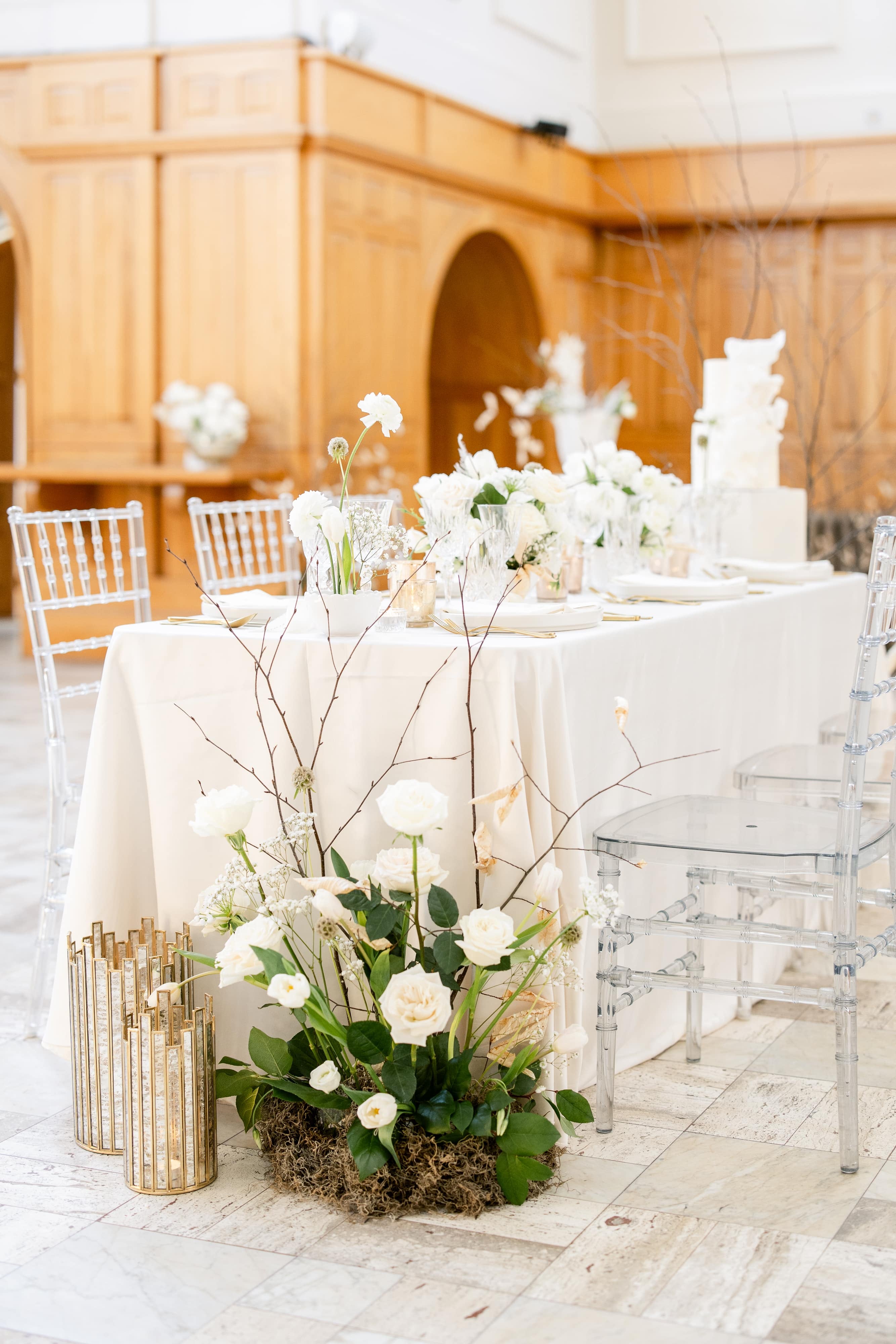 Donnez une seconde vie aux arrangements de la cérémonie en les plaçant avec élégance au bout des tables.
