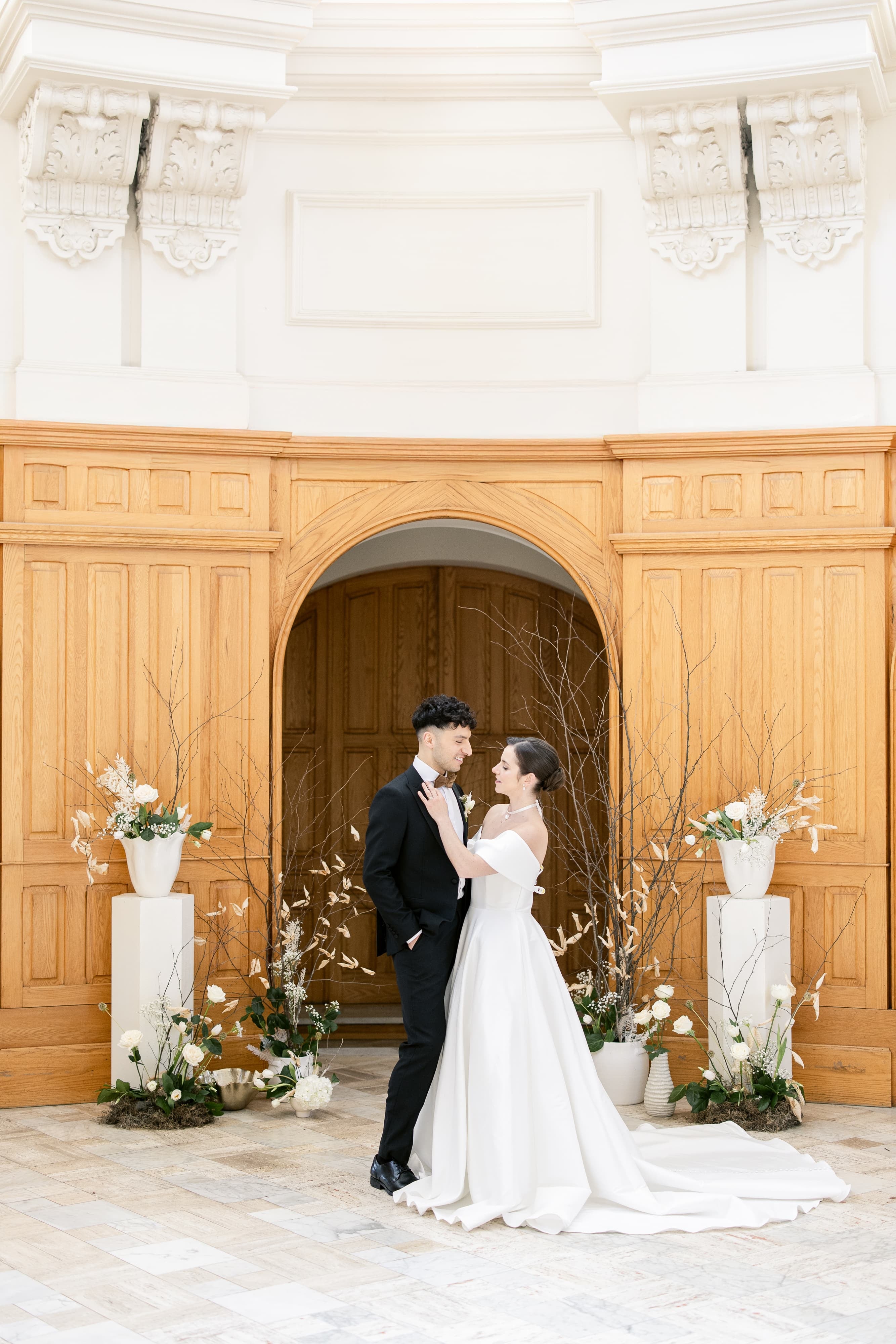 Élégante et romantique, l’arche de fleurs autoportante donne le ton de votre mariage et crée un cadre enchanteur pour la cérémonie. Elle peut ensuite être réutilisée à l’avant ou à l’arrière de la table d’honneur pour assurer une belle continuité florale à la réception.